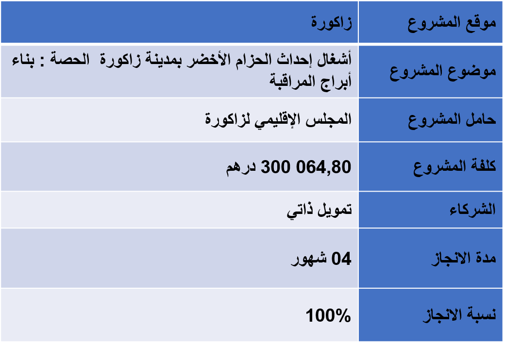 أشغال إحداث الحزام الأخضر بمدينة زاكورة الحصة : بناء أبراج المراقبة