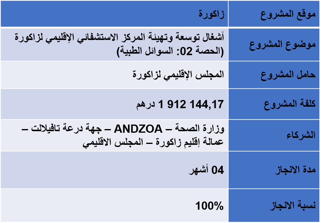 أشغال توسعة وتهيئة المركز الاستشفائي الإقليمي لزاكورة (الحصة 02: السوائل الطبية)