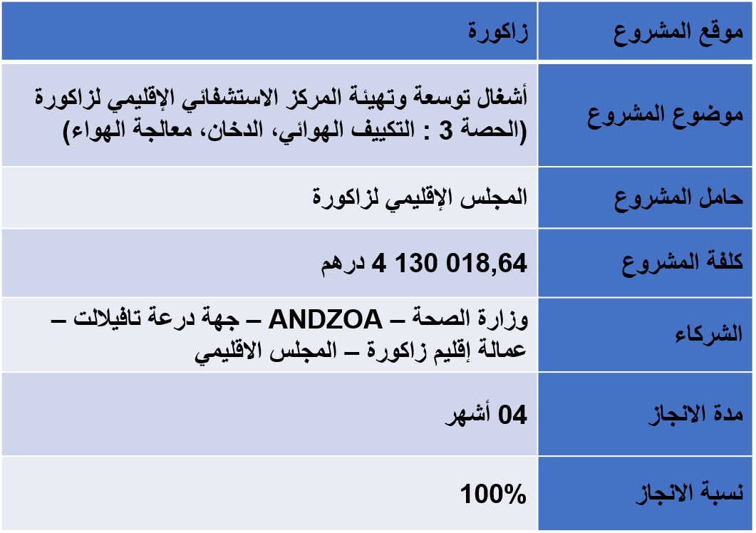 أشغال توسعة وتهيئة المركز الاستشفائي الإقليمي لزاكورة (الحصة 3 : التكييف الهوائي، الدخان، معالجة الهواء)