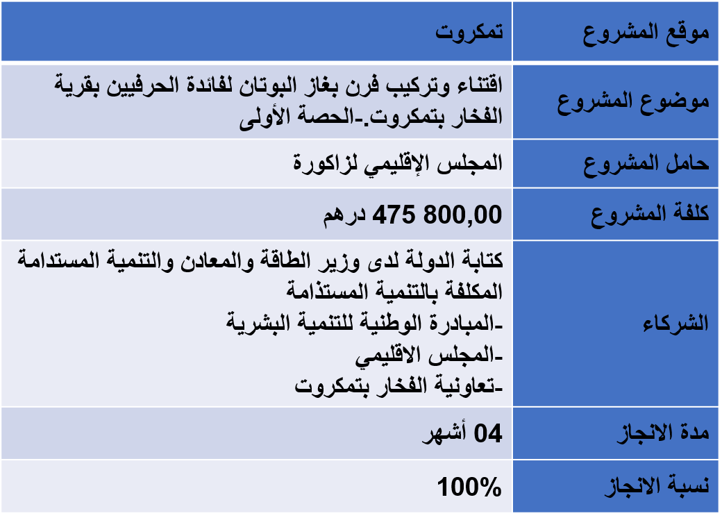 اقتناء وتركيب فرن بغاز البوتان لفائدة الحرفيين بقرية الفخار بتمكروت.-الحصة الأولى